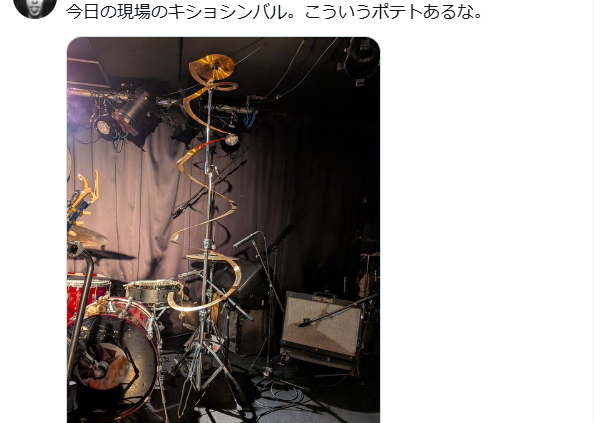 この日はドラムの渡部正人がサポートで参加しており音も豪華。なにやら面白い形のシンバルが用意されていたが、これが見た目に反していい音が鳴る。視覚的にも楽しい。